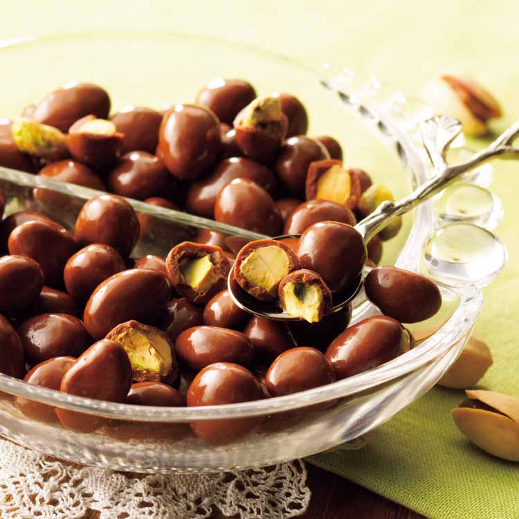 カリフォルニア産のピスタチオをミルクチョコレートで一粒ずつコーティング。ピスタチオ特有の食感と旨みが、すっきりとした味わいのチョコレートにベストマッチ。ついつい手が伸びる美味しさです。