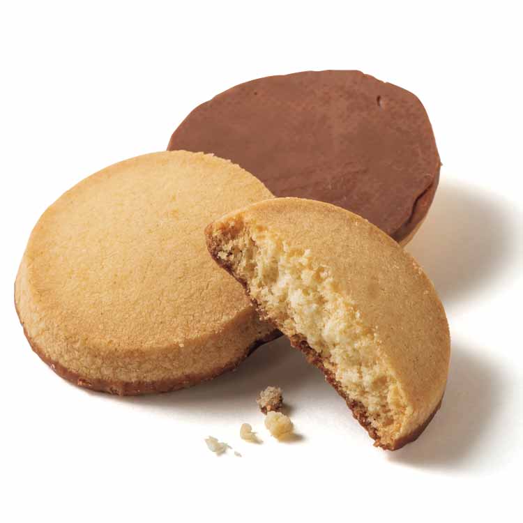北海道産の小麦粉とバターを使ったひと口サイズのクッキーの片面にチョコレートをコーティング。しっかりとした歯触りながらも口の中でほろほろと崩れ、すっきりとした甘さとバターの香りが広がります。